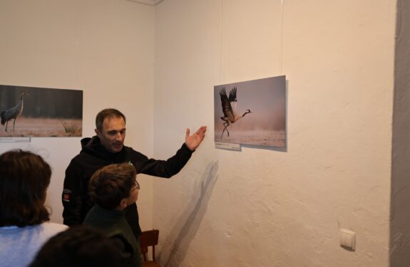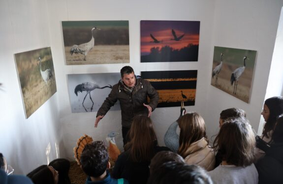 O ponto de encontro foi o Centro Ambiental do Xévora, onde os alunos tiveram um primeiro contacto com os grous, abetardas e outras espécies, através da exposição sobre avifauna local que ali se encontra patente.